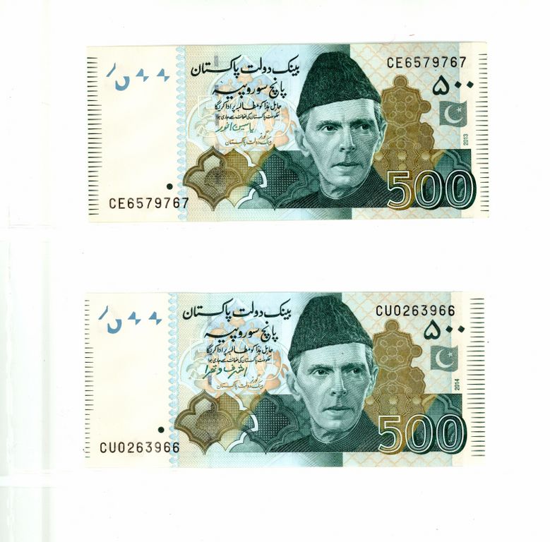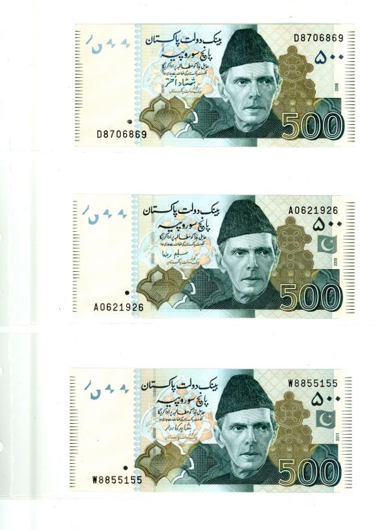 Pakistan Lot x 5 Rs 500 Banknote Signature by Shamshad Akhtar, Saleem Raza, Shahid Kardar, Yasin Anwar,Ashraf Wahtra Condition UNC
