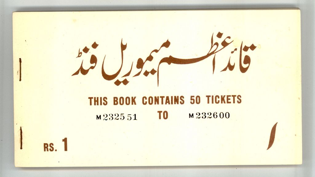 Category Banknotes Lot number 692 Starting Bid 3000 Lot Pictures Pakistan Complete Pack of Rs 1 Quaid-e-Azan Memorial Fund (50 Tickets)