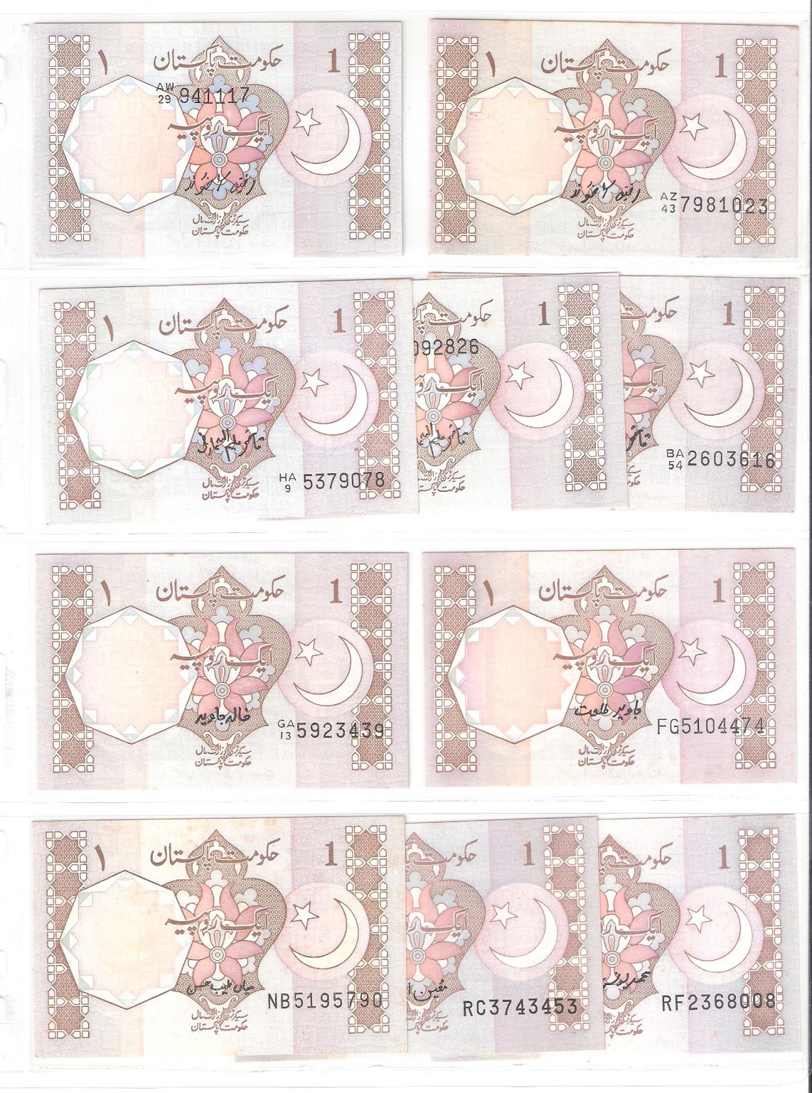 Category Banknotes Lot number 695 Starting Bid 1000 Lot Pictures Pakistan 1981-2001 1 Rupee Lot of 20 Banknotes with Different Signatures