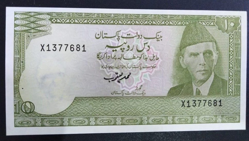 Category Banknotes Lot number 732 Starting Bid 1500 Lot Pictures Pakistan Rs 10 Signature Muhammad Yaqoob. Replacement “X” Condition UNC