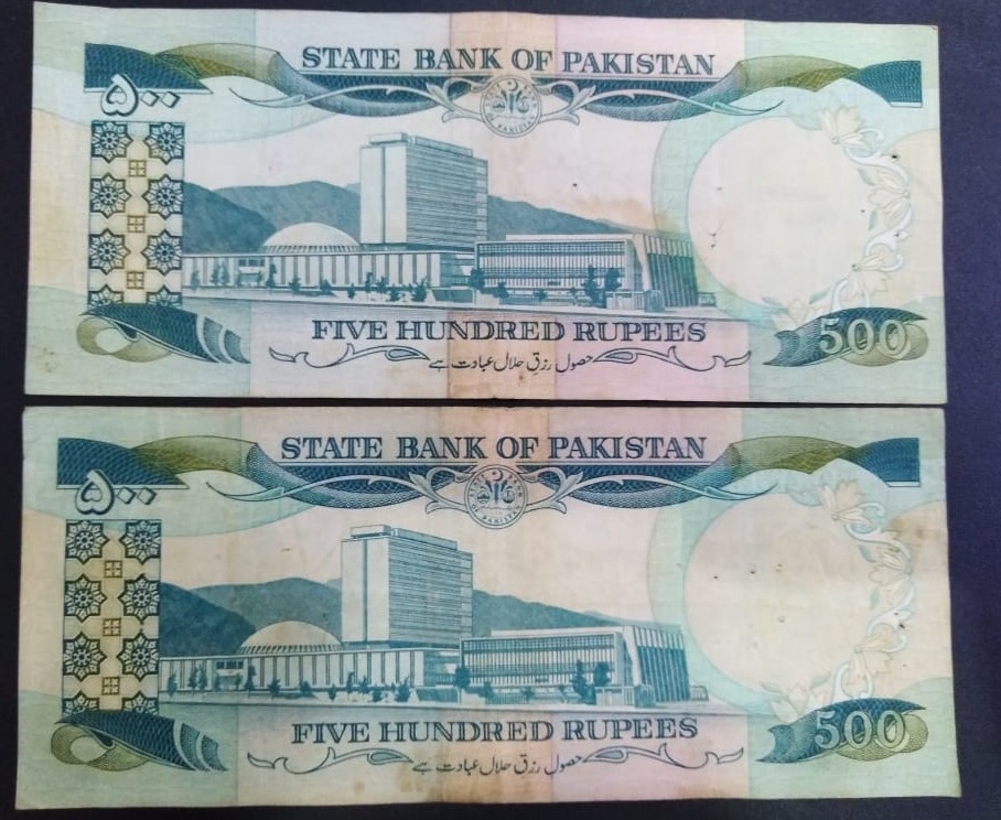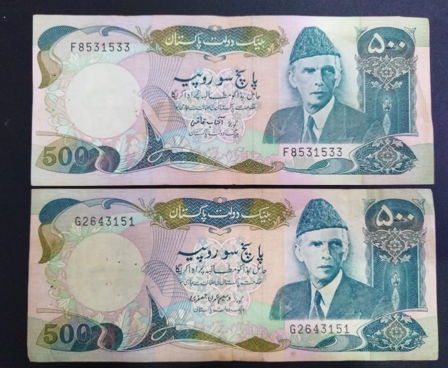 Category Banknotes Lot number 740 Starting Bid 2000 Lot Pictures Pakistan Rs 500 Signature by Aftab Qazi and Wasim aun Jaffery. junction prefix "F" & "G" 2000 Condition AUNC
