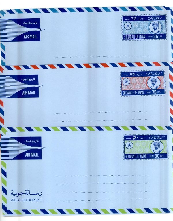 Category Middle East Lot number 922 Starting Bid 1000 Lot Pictures Oman Lot of 3 Mint Aerograme 25, 50 , 75 Baiza