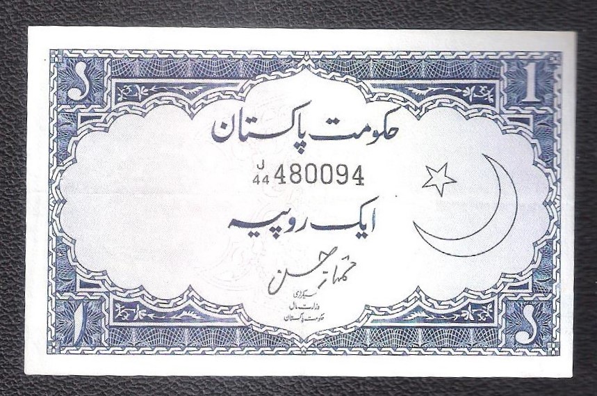 Category Banknotes Lot number 603 Starting Bid 1000 Lot Pictures Pakistan RS 1 Signature by Mumtaz Hassan prefix J/44 UNCĀ
