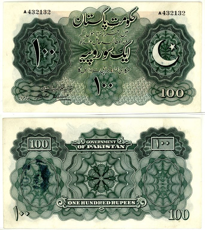 Category Banknotes Lot number 601 Starting Bid 60000 Lot Pictures Pakistan Rs 100 Signature by Ghulam Mohamamd Prefix A Condition UNC