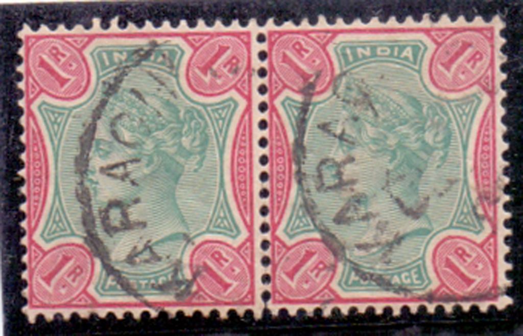 Category Rest of World Lot number 968 Starting Bid 1000 Lot Pictures India QV 1-rupee FU pair Karachi Cancellation