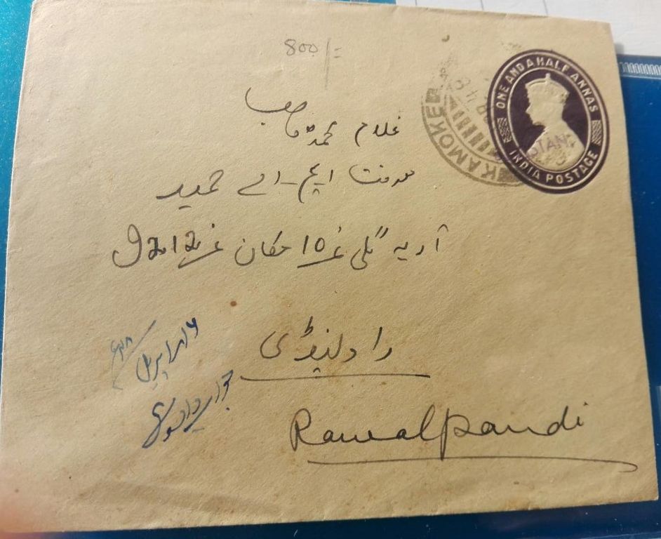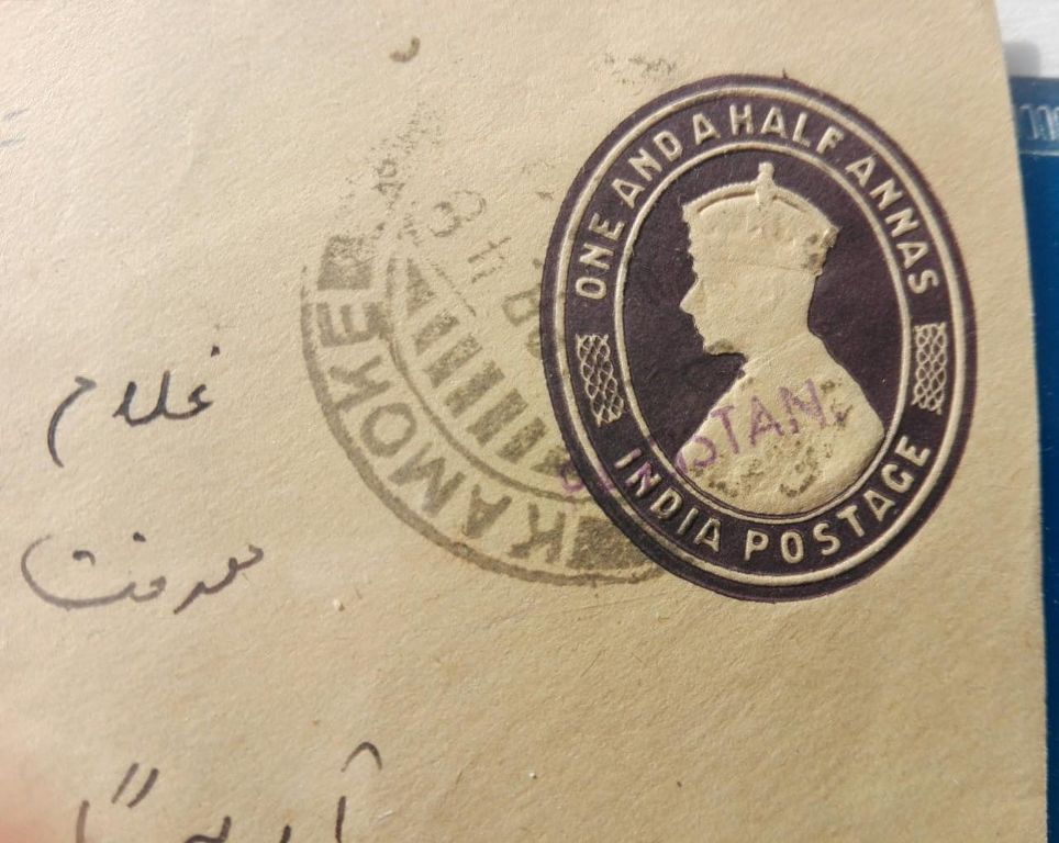 Category Pakistan Overprint Lot number 222 Starting Bid 10000 Lot Pictures PAKISTAN USED COVER OVER PRINT ON BRITISH INDIA BY RUBBER HAND STAMP POSTED FROM KAMOKE GUJRANWALA.RARE.