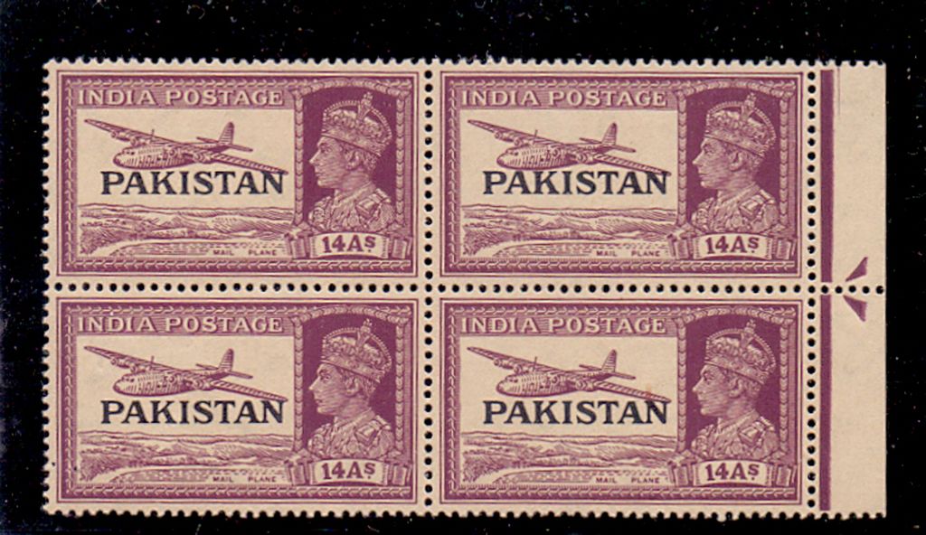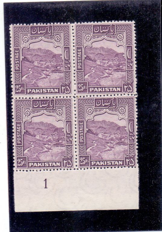 Category Pakistan Overprint Lot number 226 Starting Bid 2500 Lot Pictures Pakistan 1947 ovpt.14-annas MNH tropical gum and 1968 25-Rs Khyber Pass MNH plate block white gum.