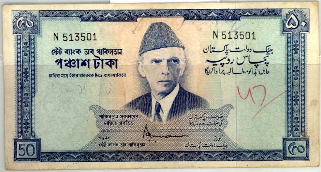 Category Banknotes Lot number 625 Starting Bid 4000 Lot Pictures Pakistan 50 Rupee Banknote Signature by S.U.Durrani prefix N, P-27 Condition XF