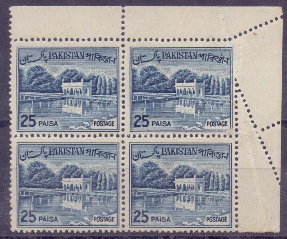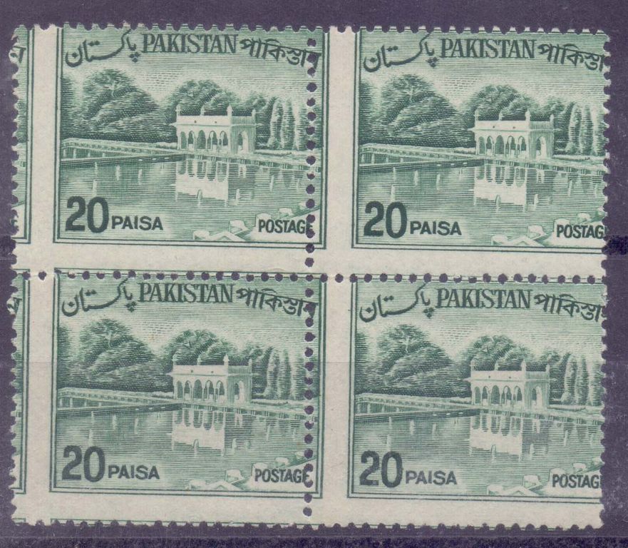 Pakistan Lot of two 1968 perf.shifted block of 4 + one pair of gum side printing + 1974 Registered letter to Dubai-UAE with imperf.pairs.