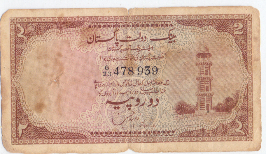 Category Banknotes Lot number 722 Starting Bid 35000 Lot Pictures Pakistan Banknote 1948 2-Rupees Sign.Zahid Hussain G.
