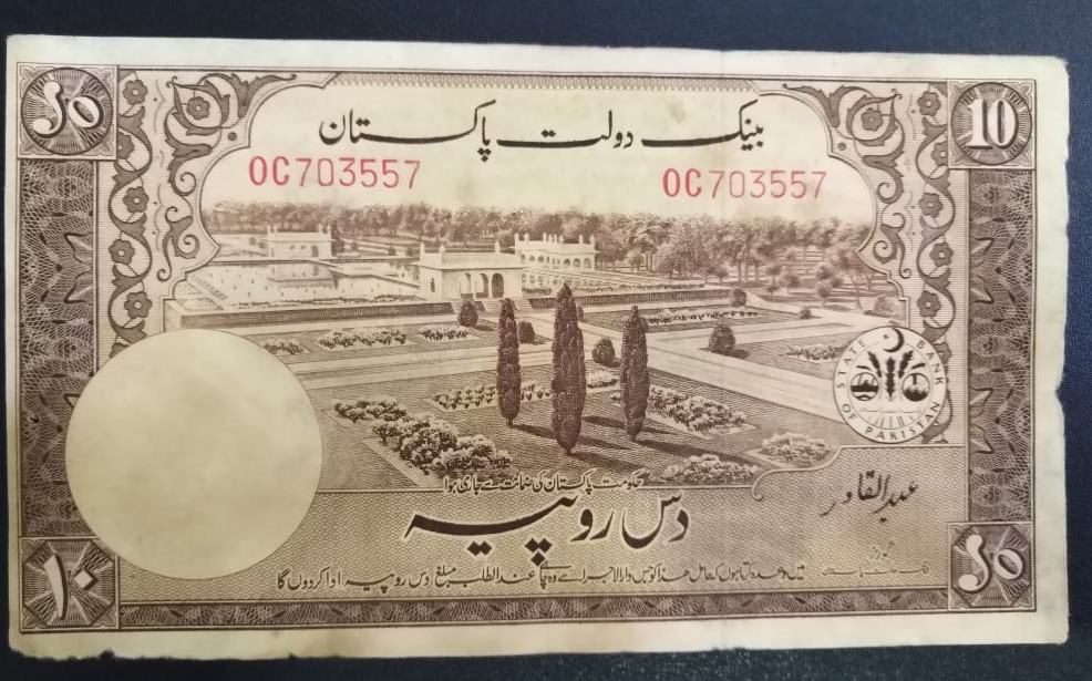 Category Banknotes Lot number 724 Starting Bid 3000 Lot Pictures Pakistan Rs 10 Shalimar Garden prefix "OC"