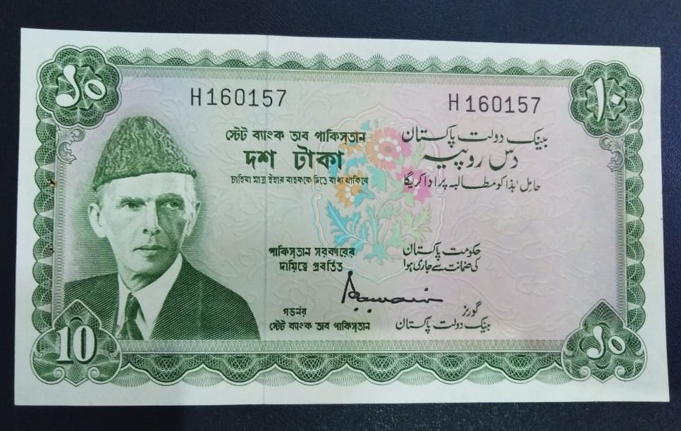Category Banknotes Lot number 726 Starting Bid 3000 Lot Pictures Pakistan Rs 10 Signature S.U Durrani. Green Condition UNC