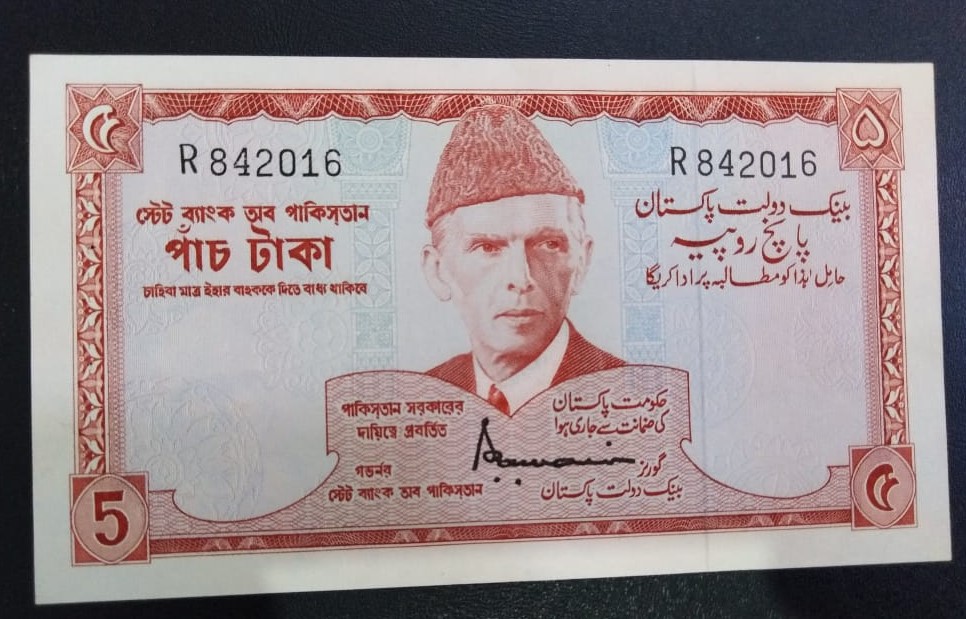 Category Banknotes Lot number 737 Starting Bid 3000 Lot Pictures Pakistan Rs 5 (RED) Signature by S.U Durrani Prefix R Condition UNC