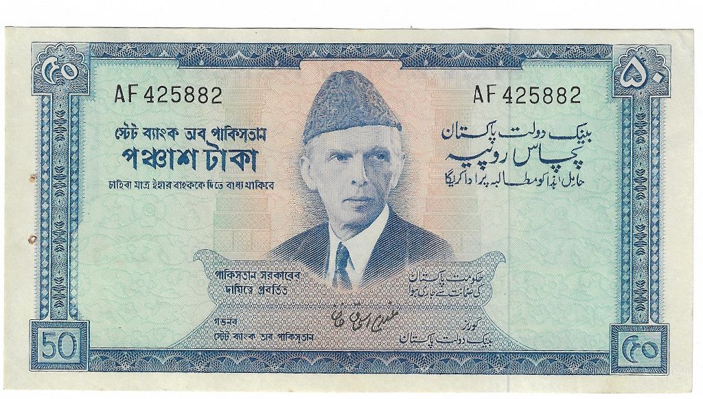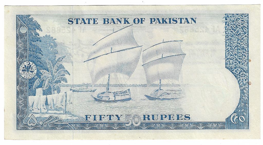 Category Banknotes Lot number 753 Starting Bid 1000 Lot Pictures Pakistan Rs 50 Signature by Ghulam Ishq Khan prefix AF Condition UNC with pin hole