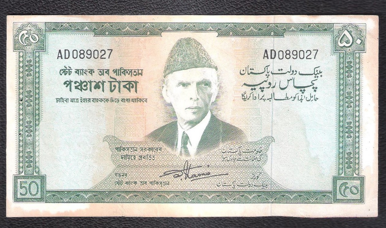 Pakistan Rs 50 Signature by Sujjhat Ali Hasni prefix AD Condition XF