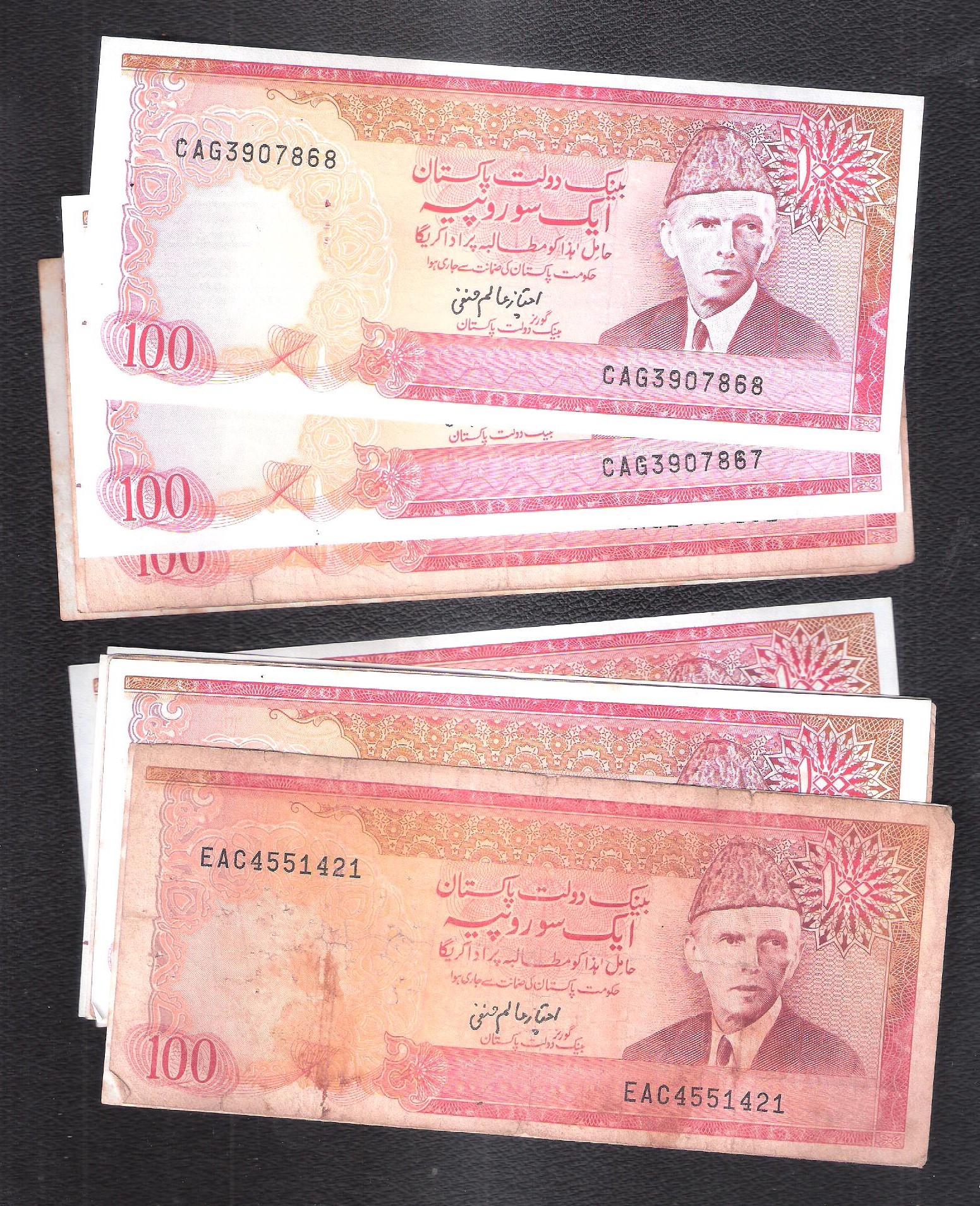 Category Banknotes Lot number 646 Starting Bid 2000 Lot Pictures Pakistan Rs. !00 (19 notes) Signature by Imtiaz Alam Hanfi condition XF-F Add to Slideshow Off