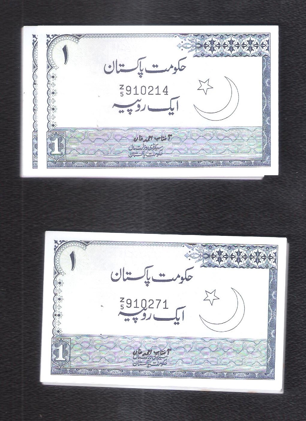 Pakistan Rs. 1 (87 notes) Signature by Aftab Ahmed Khan prefix Z/5 UNC