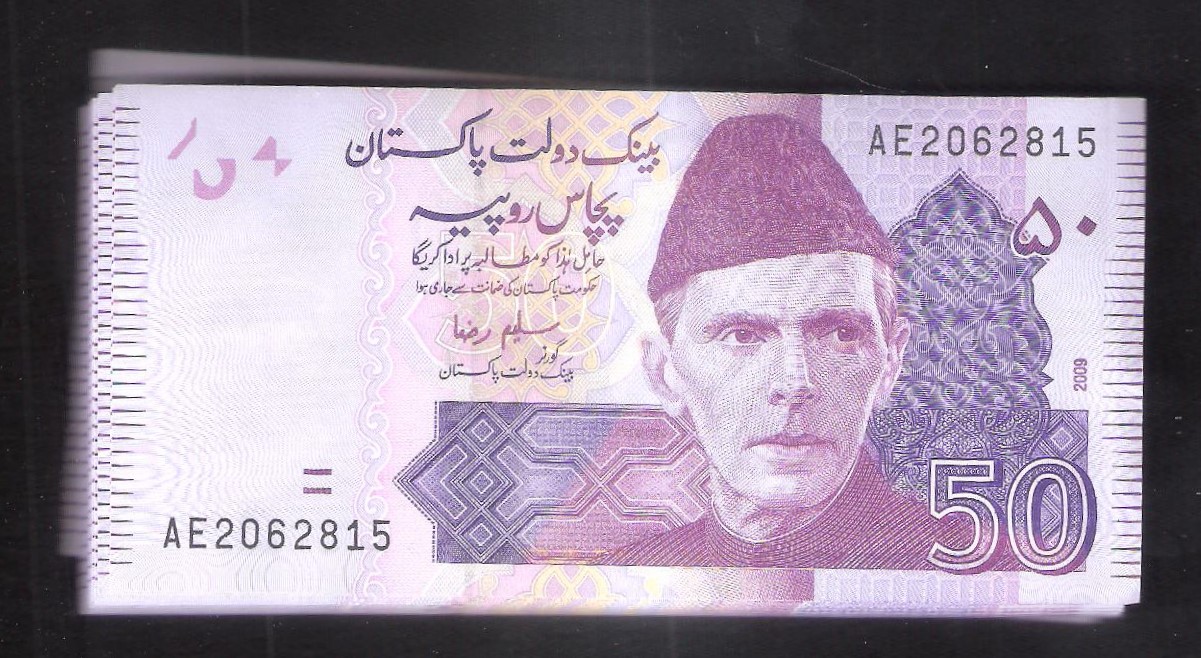 Category Banknotes Lot number 663 Starting Bid 5000 Lot Pictures Pakistan Rs 50 (85 Notes) Signature by Saleem Raza 2009 Issue AE prefix UNC Add to Slideshow Off