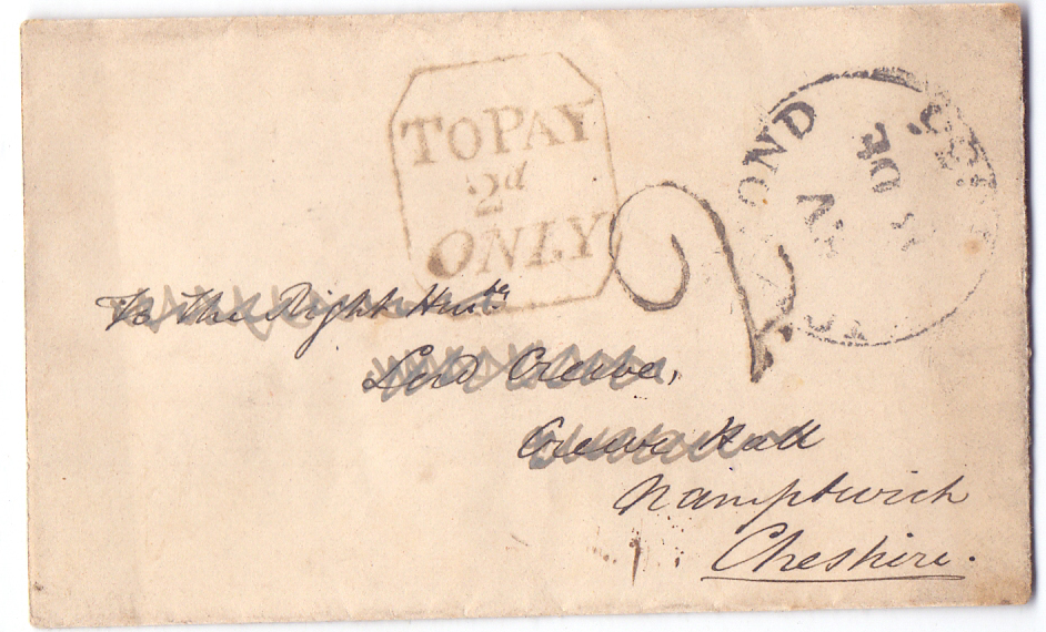 Category Rest of World Lot number 989 Starting Bid 2000 Lot Pictures 1835 GB Prestamp London 2 penny post to Chesire with “To Pay/ 2d/ only”. Add to Slideshow Off