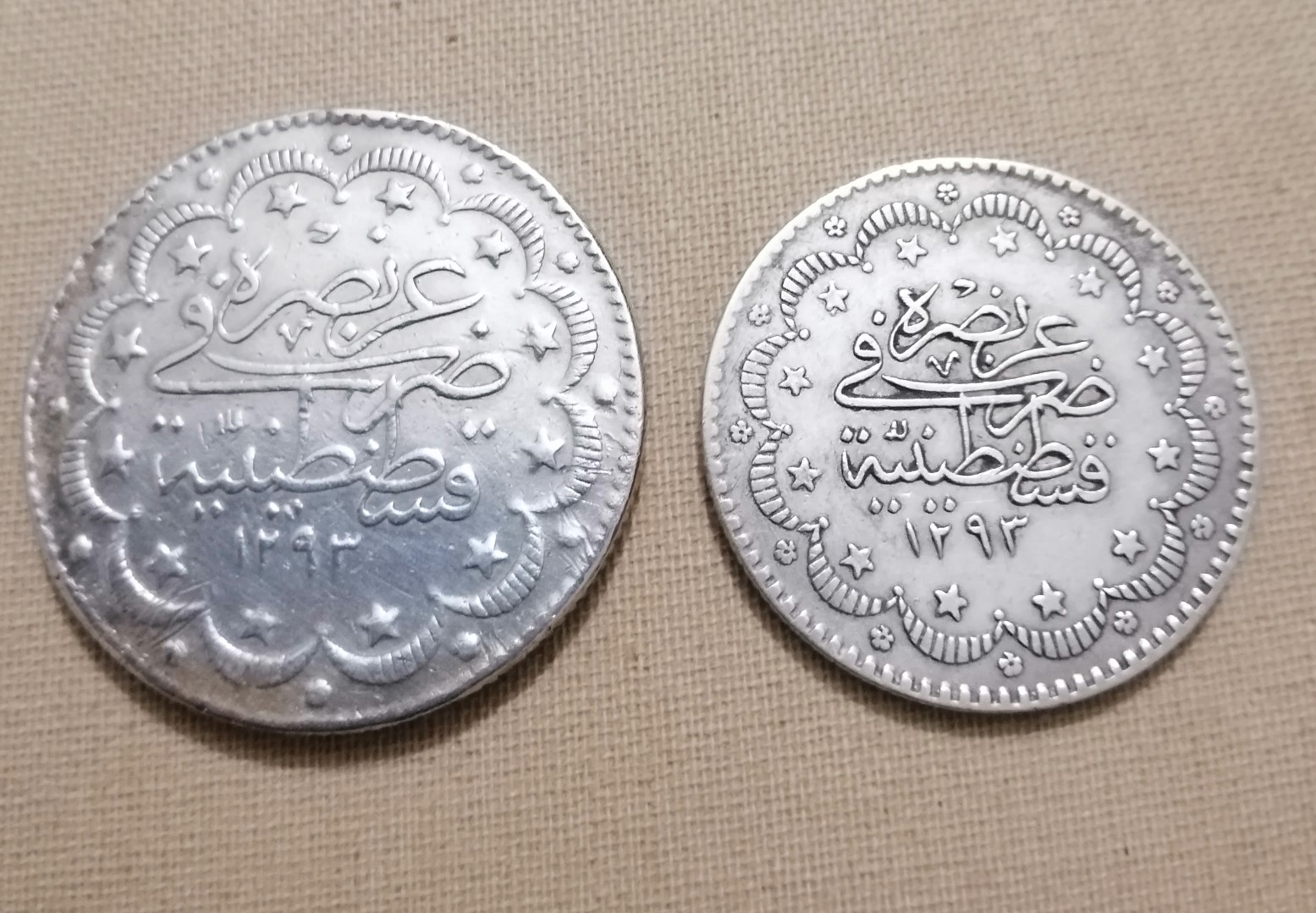 Category Coins Lot number 880 Starting Bid 12000 Lot Pictures Turkish Osmaniya Empire 2 x lower values of silver coins minted in 1293 Hijri or 1876 Add to Slideshow Off