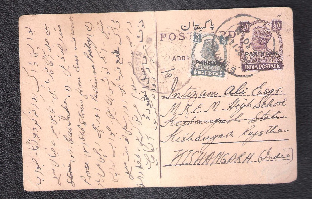 Pakistan 1948 KGV half anna postcard overprint Pakistan additional frank 3pc Overprint stamp