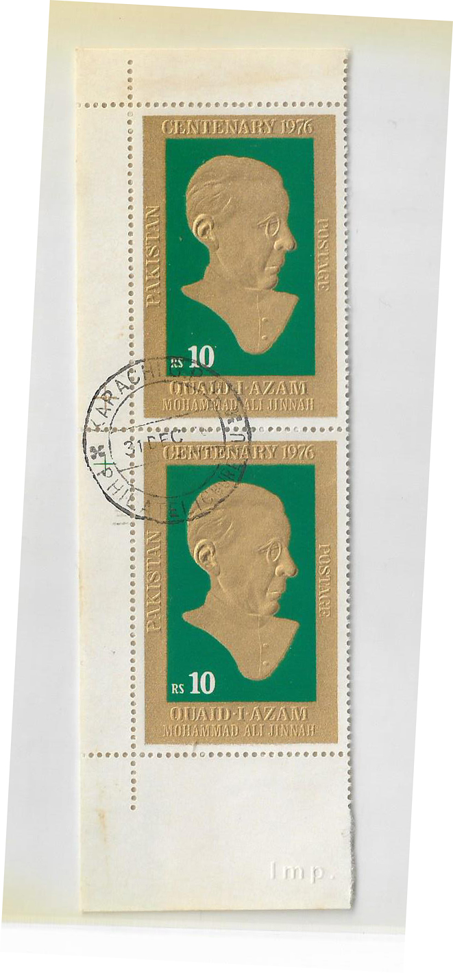 Category Pakistan Lot number 119 Starting Bid 1000 Lot Pictures Pakistan 1976 Quad-e-azam Rs.10 Gold pair of 2 Very fine used Add to Slideshow Off